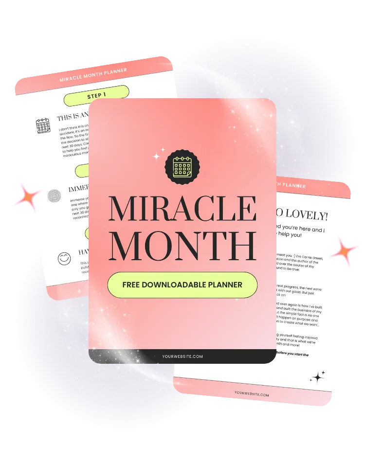 I know how easy it is to lose momentum or feel like you’re going in circles. That’s why I’m sharing the Miracle Month Planner with you — a simple, guided system to reset, refocus, and stay consistent.